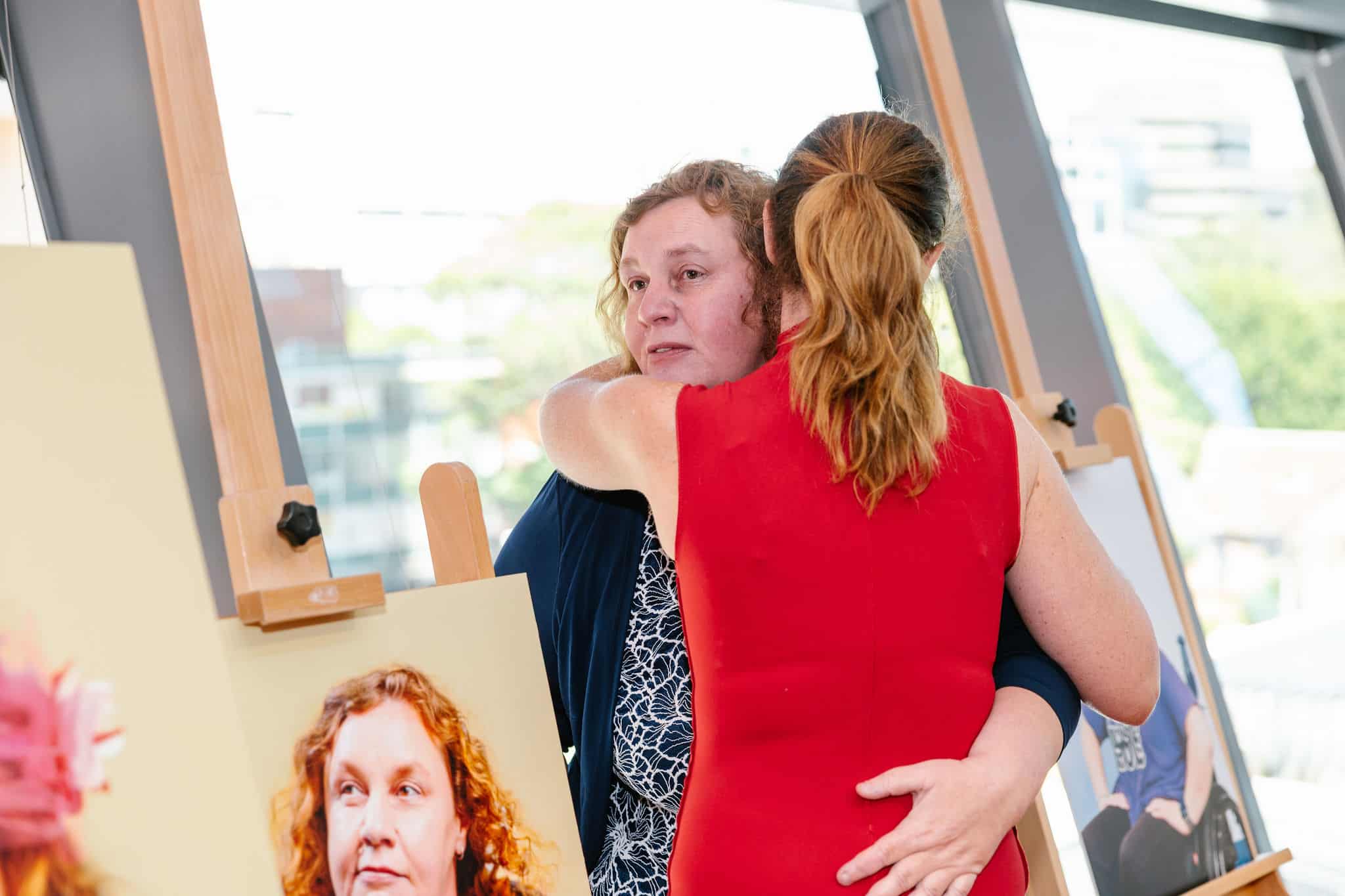 When our five client models Jemma, Grace, Jodie, Elsie and Todd saw their portraits for the first time the room fell silent. But only for a moment. Within seconds all five reacted and those reactions were raw, emotional and beautiful. Tears flowed and not just from our models. Our guests were also deeply moved.