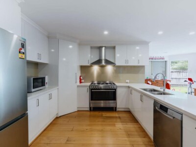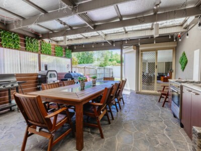 This home is spacious with open-plan living, a bath tub in the shared bathroom, a large outdoor entertainment area, garden shed and vegetable garden in the backyard.