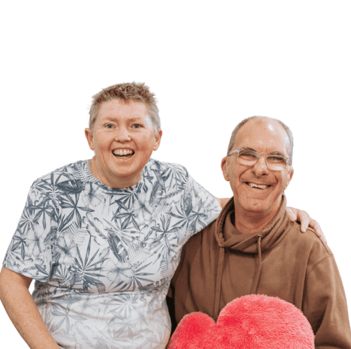 Meet Jean and Stephen! Jean and Stephen have been living in one of our Supported Independent Living (SIL) houses for seven years. Jean and Stephen became good friends soon after they first met, and they are now friends for life. Jean and Stephen live in the same SIL house. Their SIL house is close to the shops, public transport, friends, and a park. Jean and Stephen have a perfect balance of enjoying friendships, independence, hobbies and support. Jean says they feel like the “luckiest